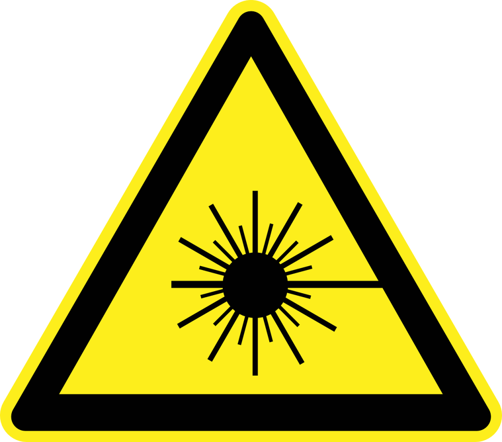 Etichetta del laser, cosa deve riportare: l’etichetta deve essere gialla, con i bordi e le scritte ben leggibili in nero. Deve essere, inoltre, della lingua del paese di utilizzo del laser. Riporta: la classe del laser, la massima potenza emessa, le lunghezze d’onda emesse, eventuale tempo d’impulso, la normativa usata per la classificazione e l’ indicazione di laser invisibile (qualora ci fosse).